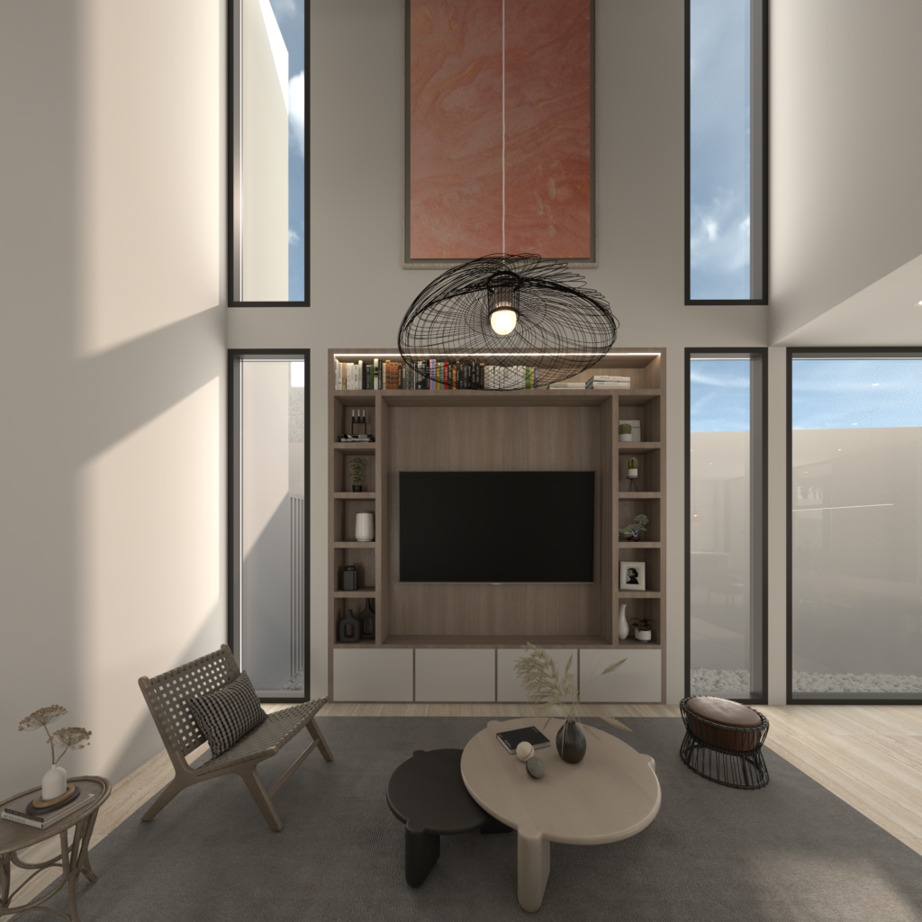 Casa P&E esa una residencia contemporánea de dos niveles que combina elegancia, funcionalidad y una fuerte conexión con la naturaleza. Su fachada destaca por la perfecta integración de materiales como piedra natural, madera y celosías verticales, creando una composición armónica y sofisticada.